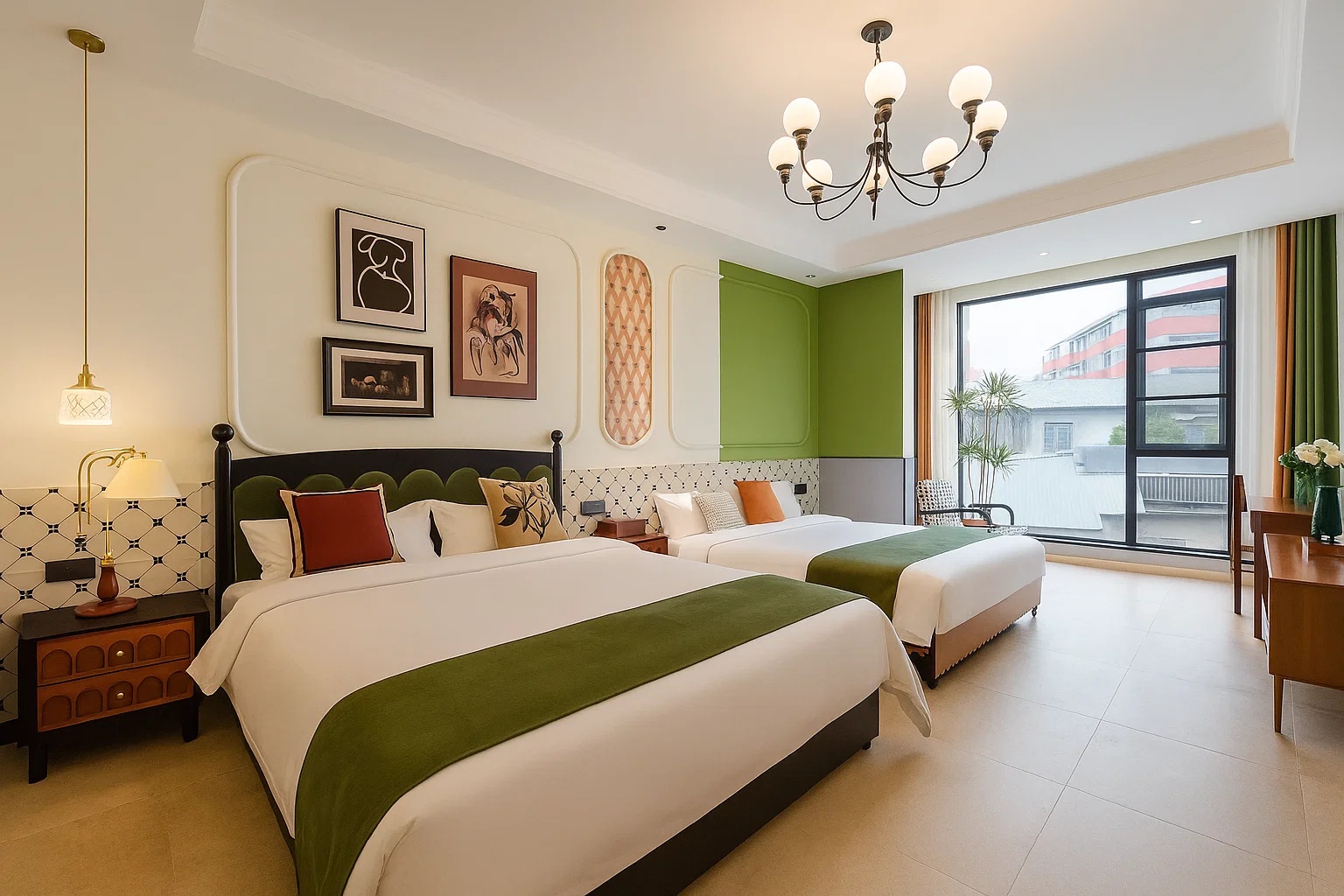 舒適雙床房(零壓床+記憶枕+休閑沙發+落地窗+搖搖椅)