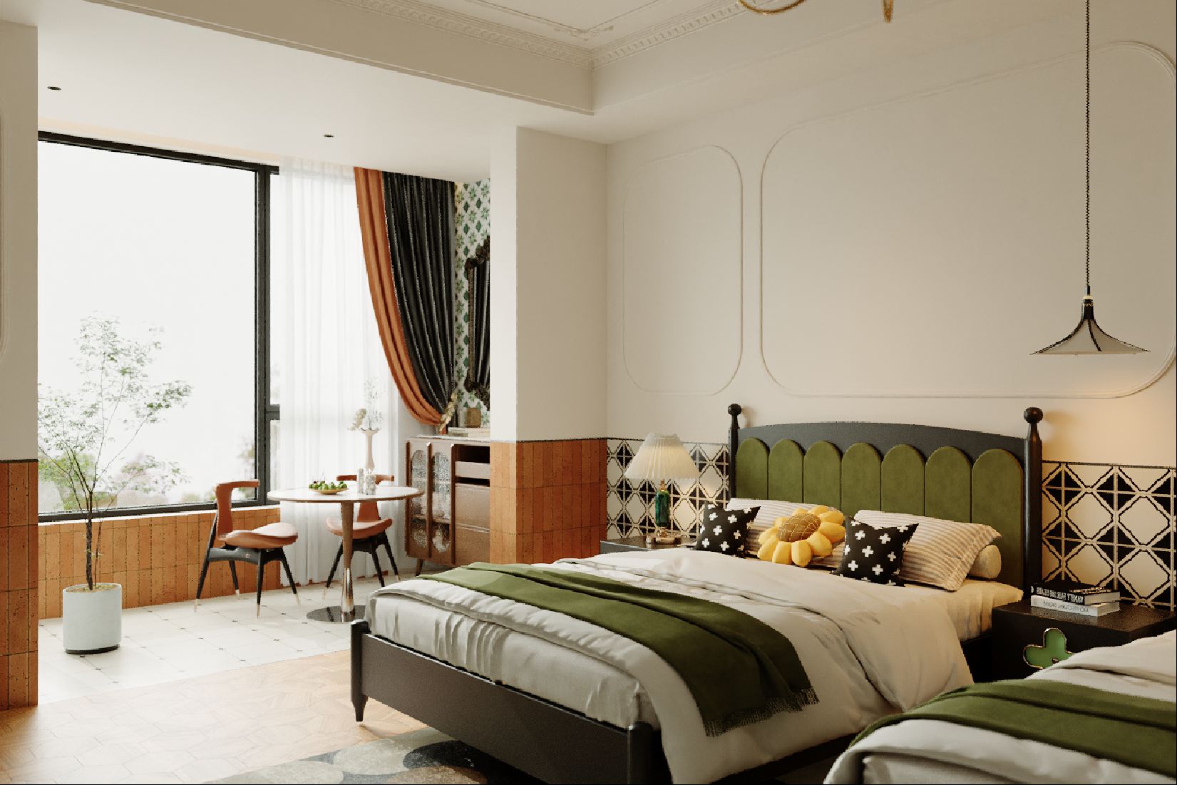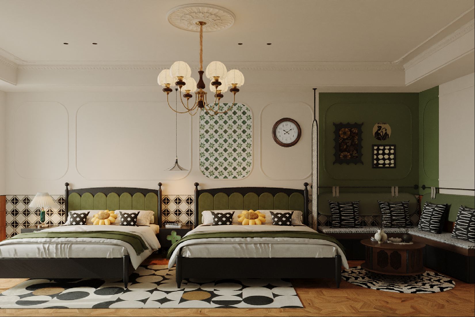 舒適雙床房(零壓床+記憶枕+休閑沙發+落地窗+搖搖椅)
