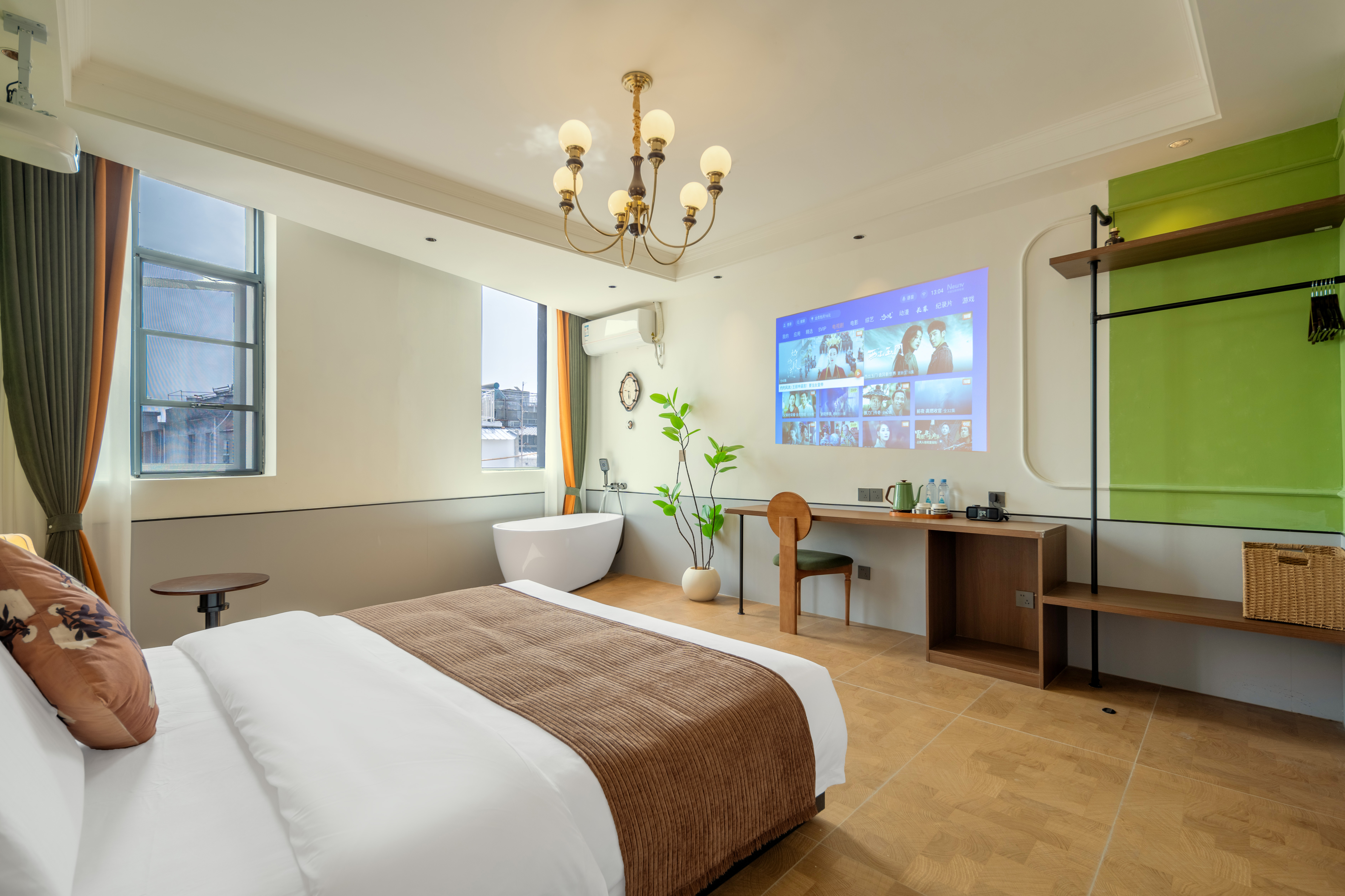 泡池大床房(智能客控+記憶枕+休閑沙發+搖搖椅+投影)